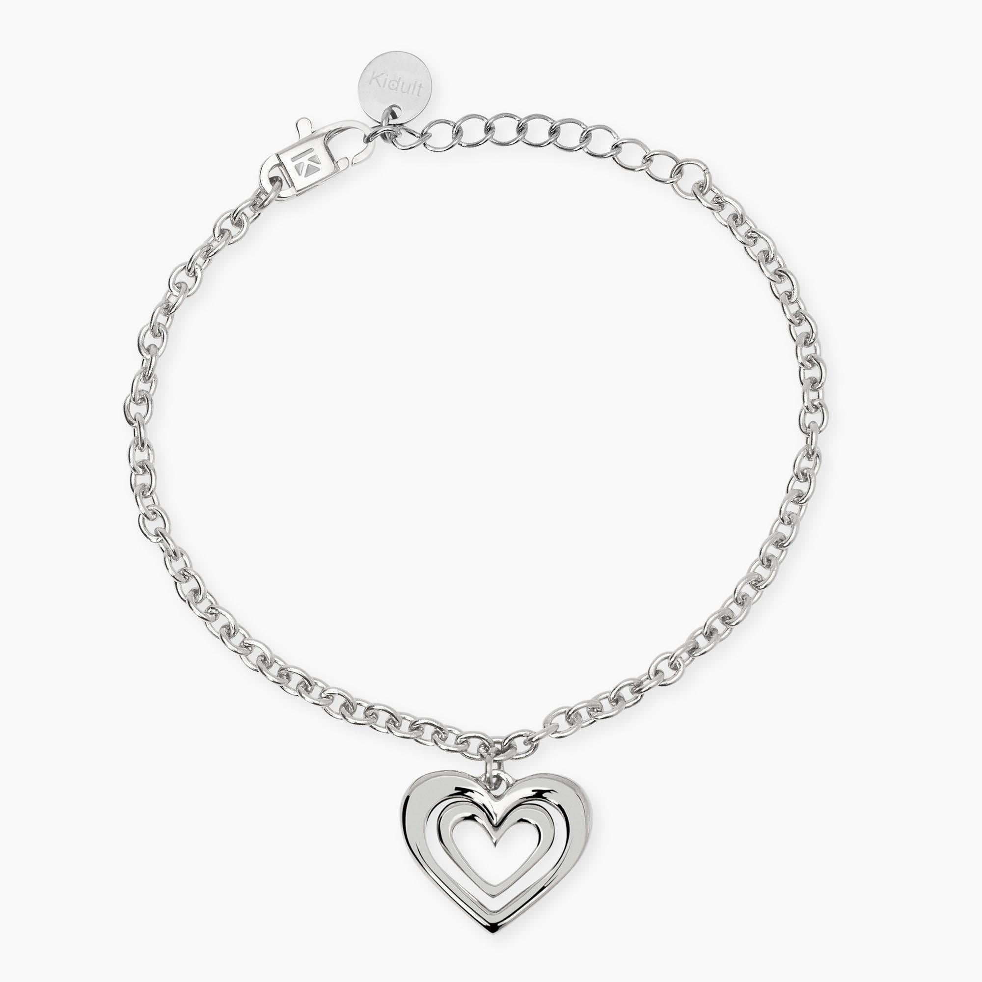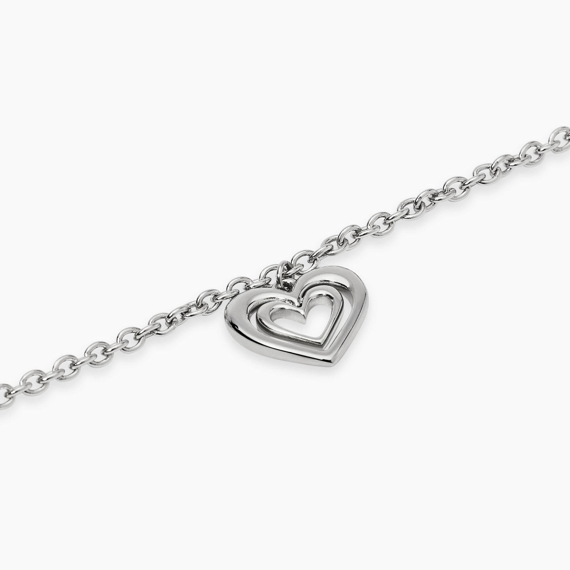 Bracciale regolabile in acciaio con catena rolò e ciondolo cuore.