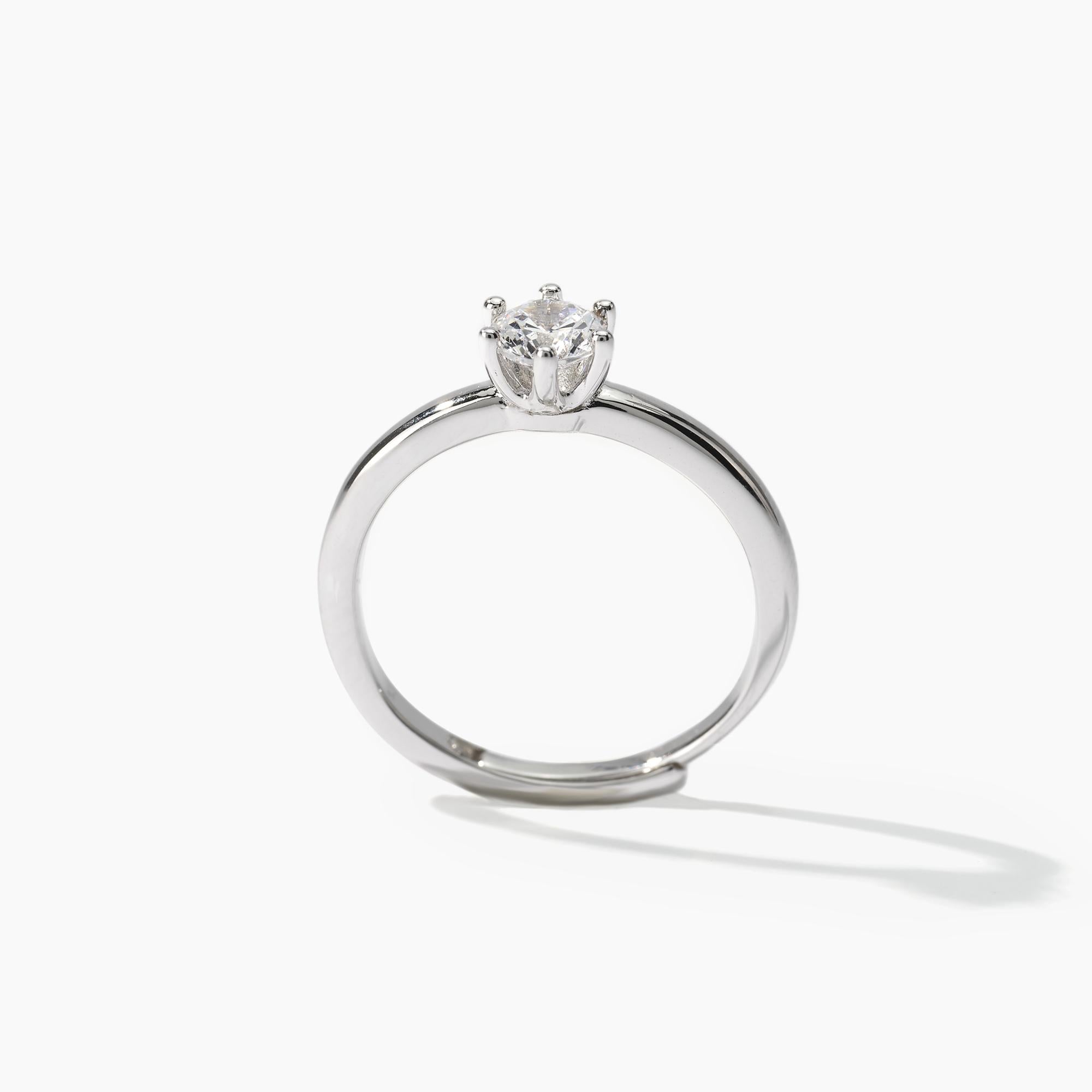 Anello solitario in argento con zircone.