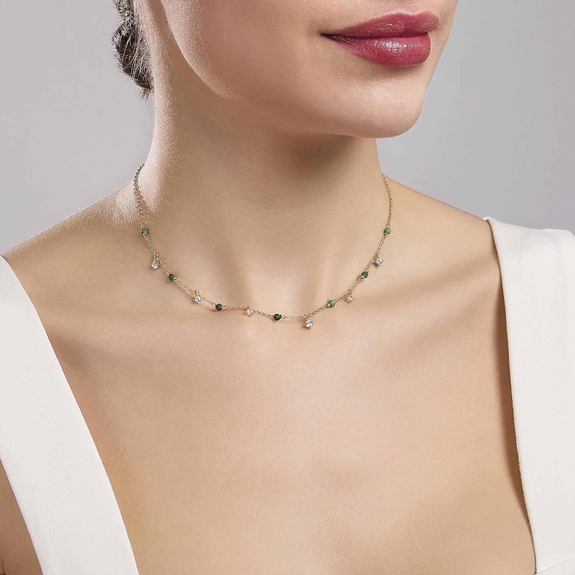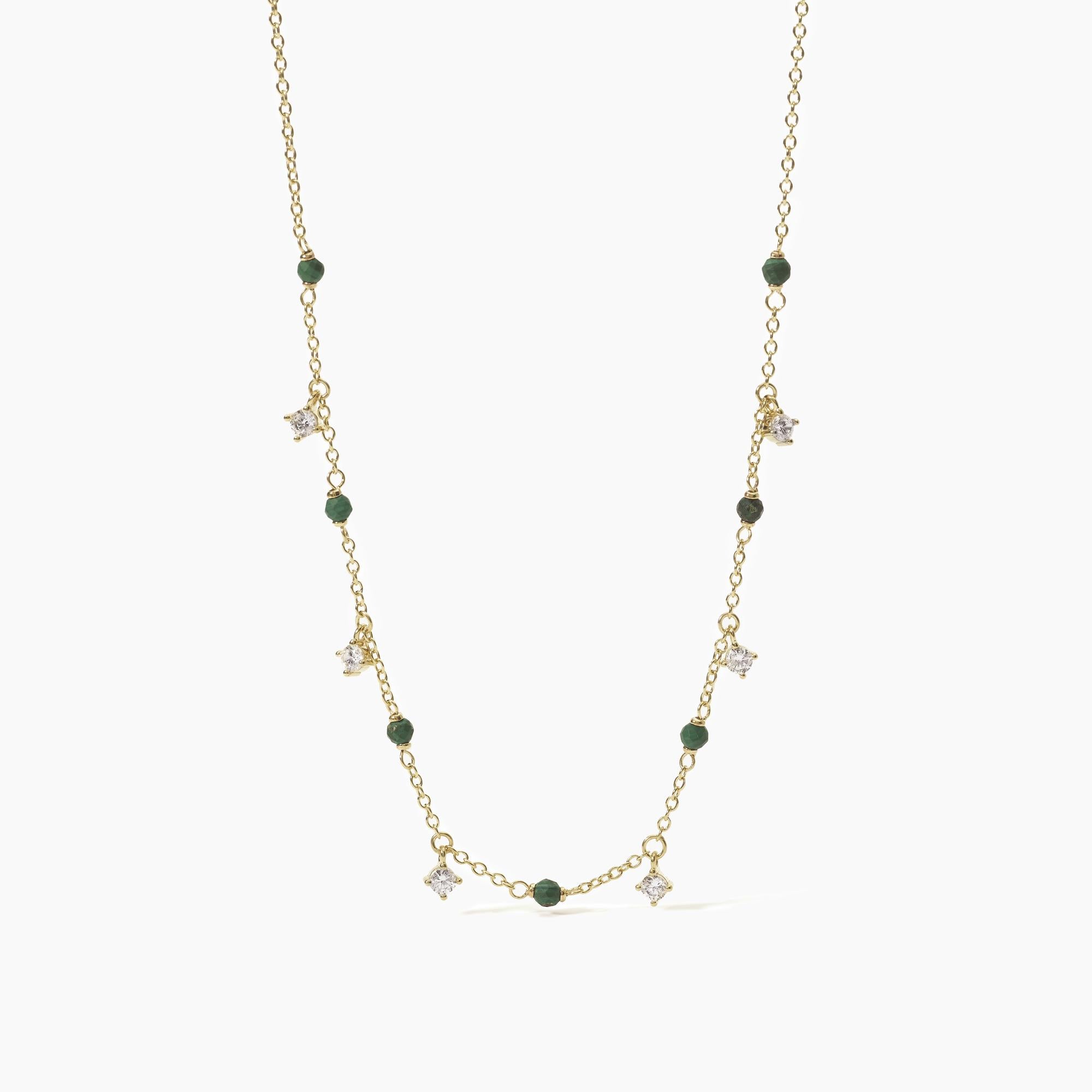 Girocollo in argento placcato oro 18k con sfere in malachite e punti luce in zircone