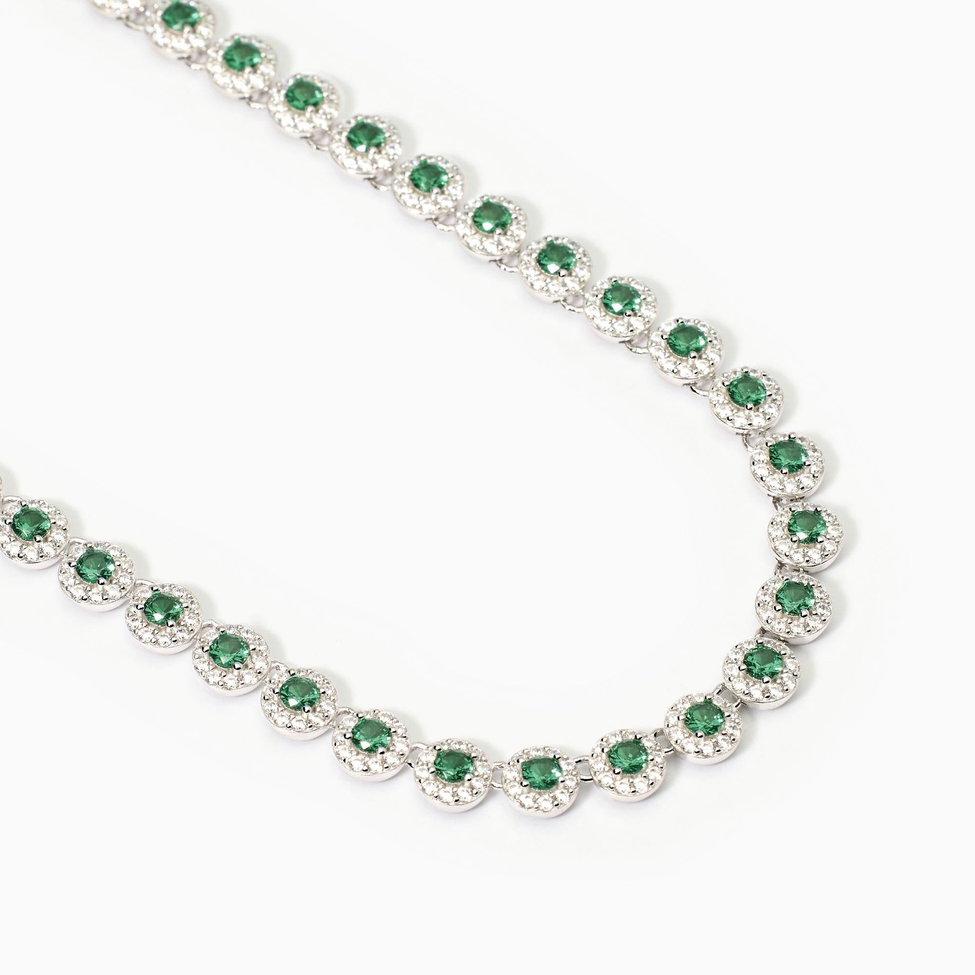 Girocollo tennis regolabile da donna in argento rodiato con smeraldi sintetici e zirconi.