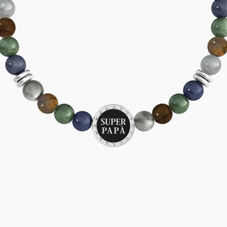 Bracciale kidult collezionabile in acciaio 316L,ematite grigia e pietre multicolore (cod.art. 732244)