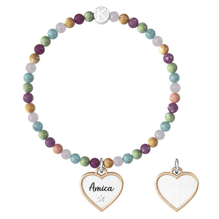 Bracciale kidult collezionabile in acciaio 316L,agata multicolore striata e cristalli (cod.art. 732223)