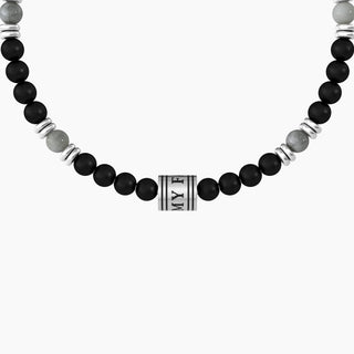 Bracciale kidult collezionabile in acciaio 316L,black pvd,dumortierite blu e agata nera ( cod.art. 732260)