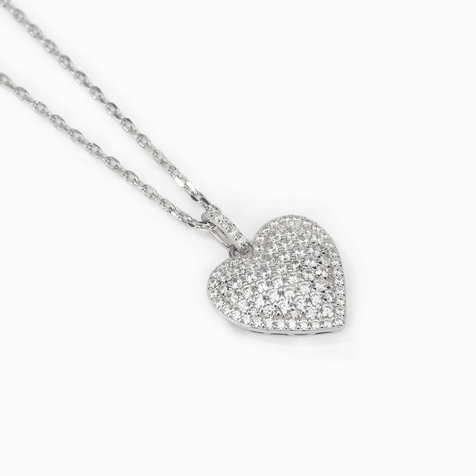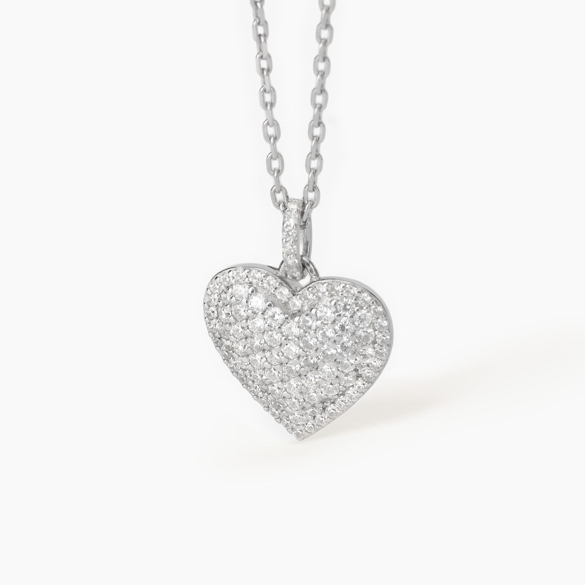Girocollo rolò in argento con ciondolo a cuore in pavé di zirconi.