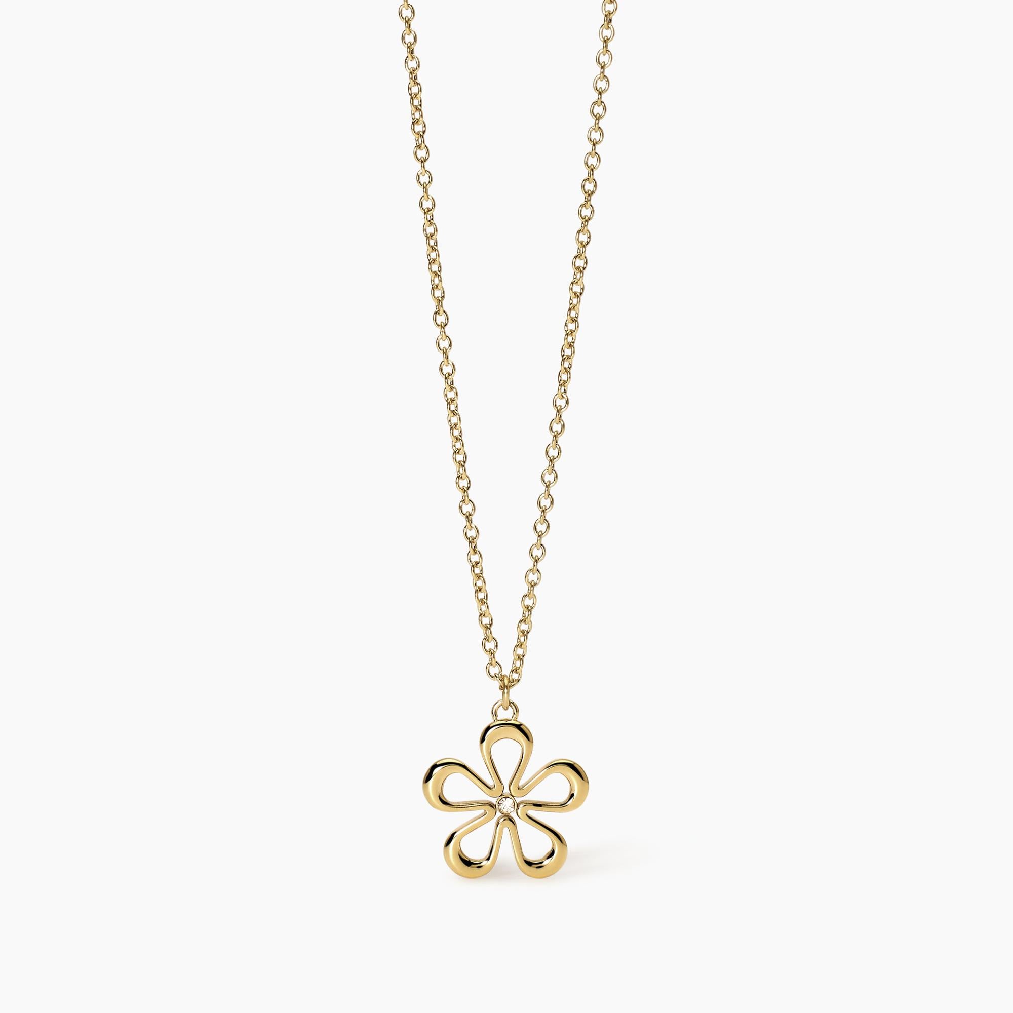 Girocollo in acciaio dorato con catena rolò e pendente fiore con cristallo.